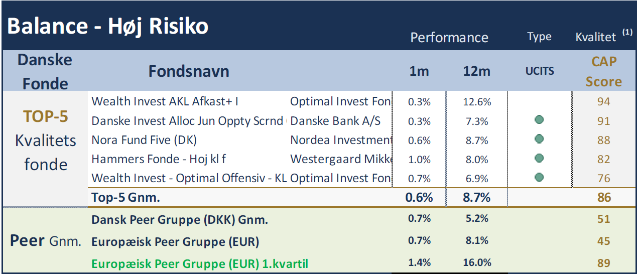 I den nyeste analyse fra det uafhængige analysehus Copenhagen Allocation Partner (CAP) placeres Afkast+ som den bedste balancerede fond i kategorien “høj risiko”.