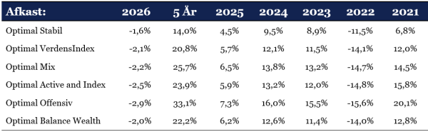 - Wealth Invest Optimal afdelingerne faldt med ml. -5,1% til -3,4% i marts.