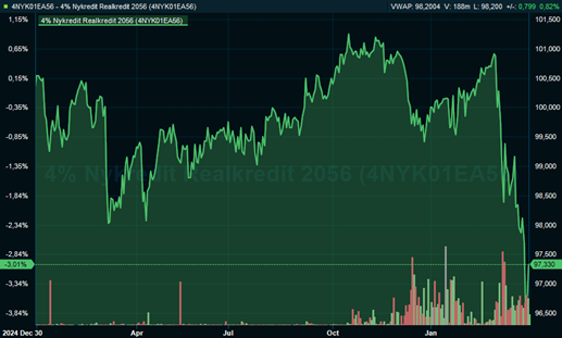 Note: Kursudvikling af 4% Nyk 2056 med afdrag siden primo 2025