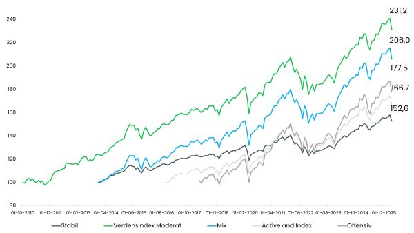 Historisk udvikling i Optimal invests afdelinger siden start: Hvad er 100 kr. blevet til?