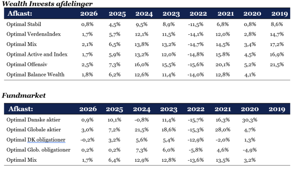 - Wealth Invest Optimal afdelingerne steg med ml. +2,4% til +5,6% i første halvdel af april.