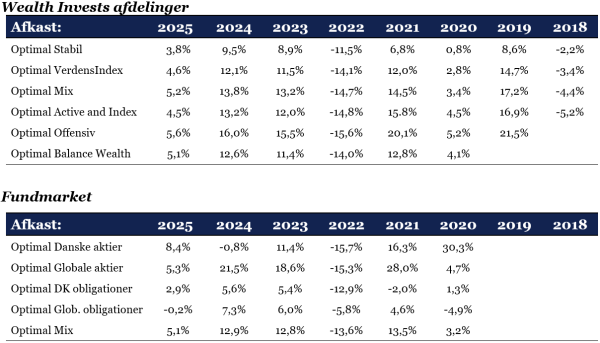 • Wealth Invest Optimal afdelingerne faldt ca. -1,0% i første halvdel af december. Wealth Invest Optimal Stabil er igen blevet kåret som Danmarks bedste balancerede fond i lavrisikokategorien.