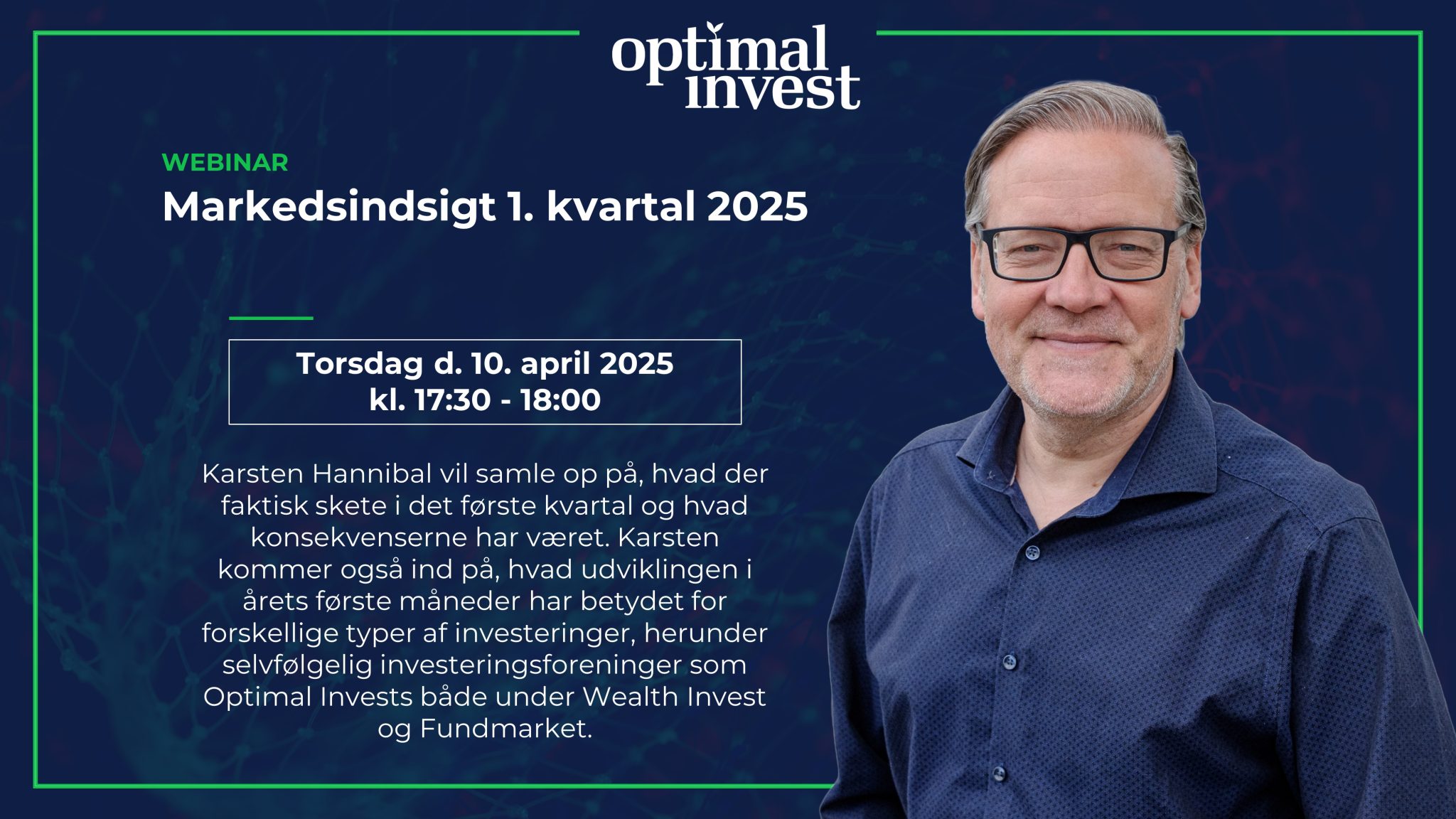 Her vil Karsten Hannibal samle op på, hvad der faktisk skete i det første kvartal og hvad konsekvenserne har været. Karsten kommer også ind på, hvad udviklingen i årets første måneder har betydet for forskellige typer af investeringer, herunder selvfølgelig investeringsforeninger som Optimal Invests både under Wealth Invest og Fundmarket.